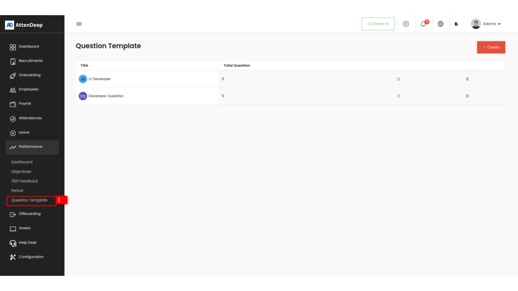 With AttenDeep, you can create custom question templates tailored to your specific needs. These templates provide a structured way to ask questions in various contexts—such as during performance reviews or feedback sessions. By building your own templates, you can ensure that each question aligns with your goals and captures the insights that matter most.